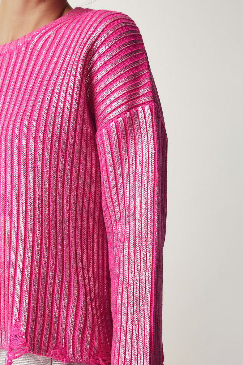Solid Simple Silver Foil Loose Slim Long Sleeve Sweater