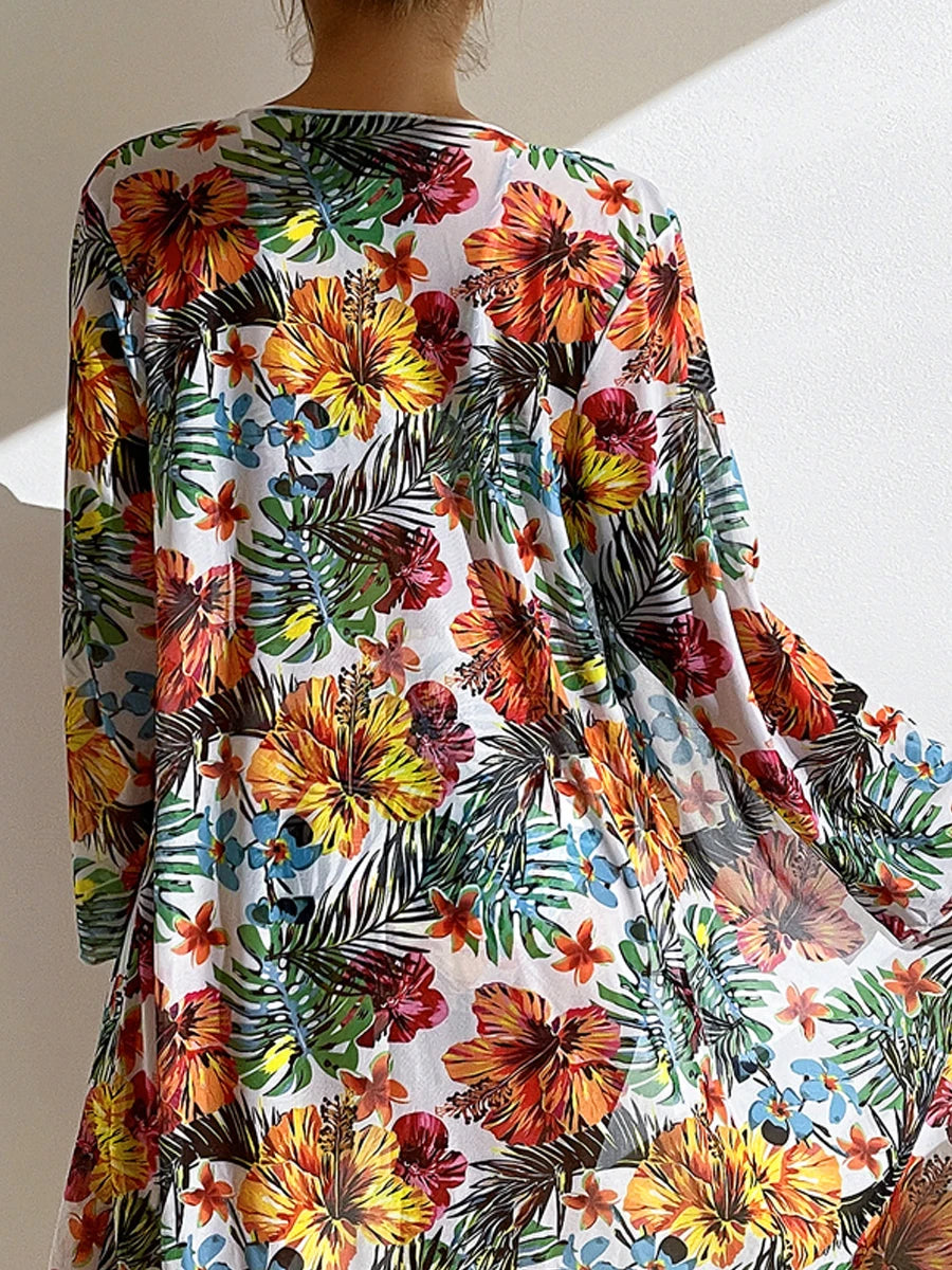 Floral Knot Front Long Sleeve Two Piece Set