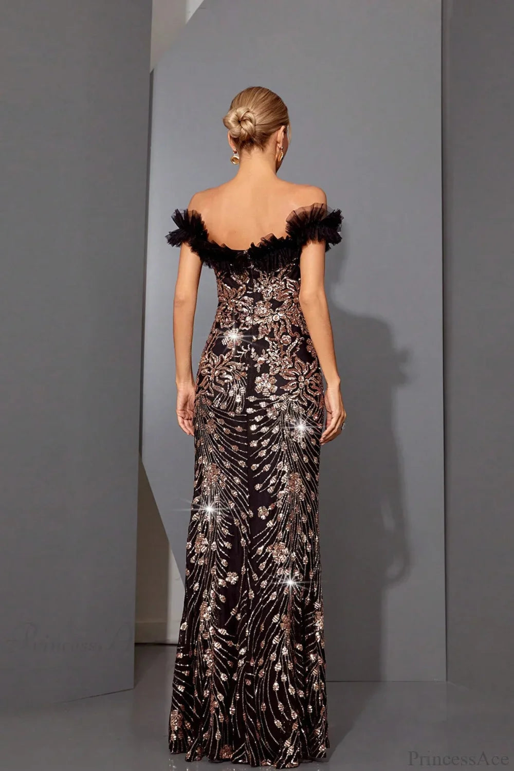Sequin Off-the-Shoulder Fitted Mermaid Evening Dress