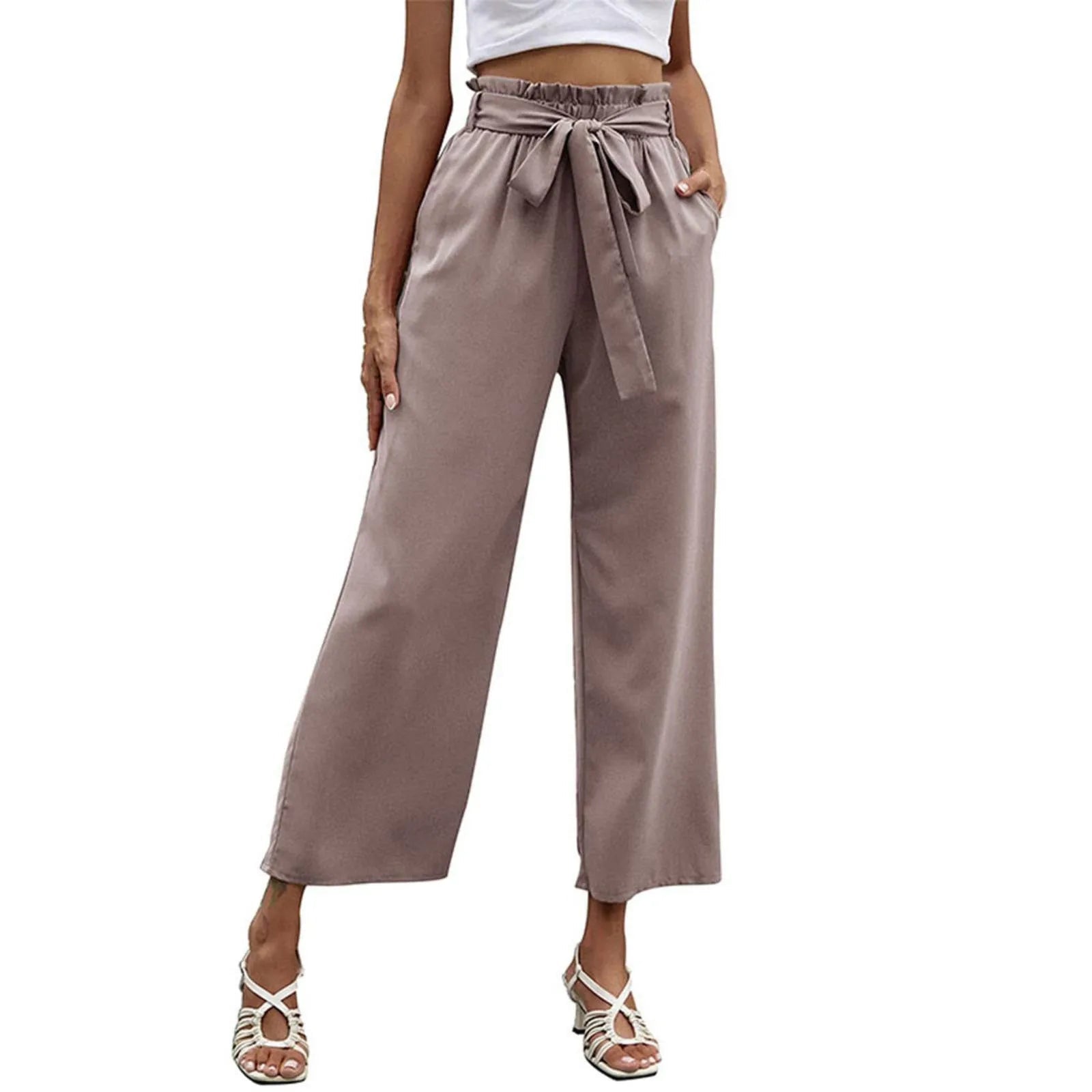 Bow Waistband Pleated Cotton Linen Pants
