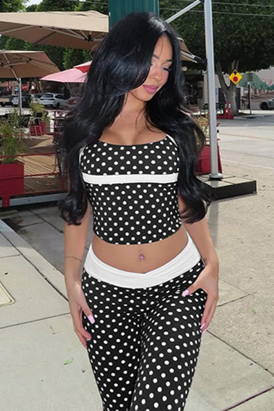 Contrast Polka Dot Sexy Tank Pants Two Piece Set