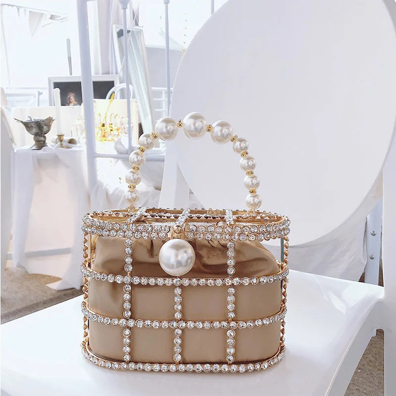 Diamonds Basket Clutch Luxury Pearl Beaded Wedding Party Evening Bag
