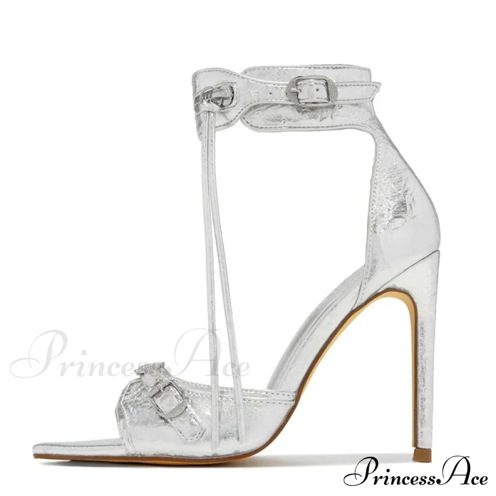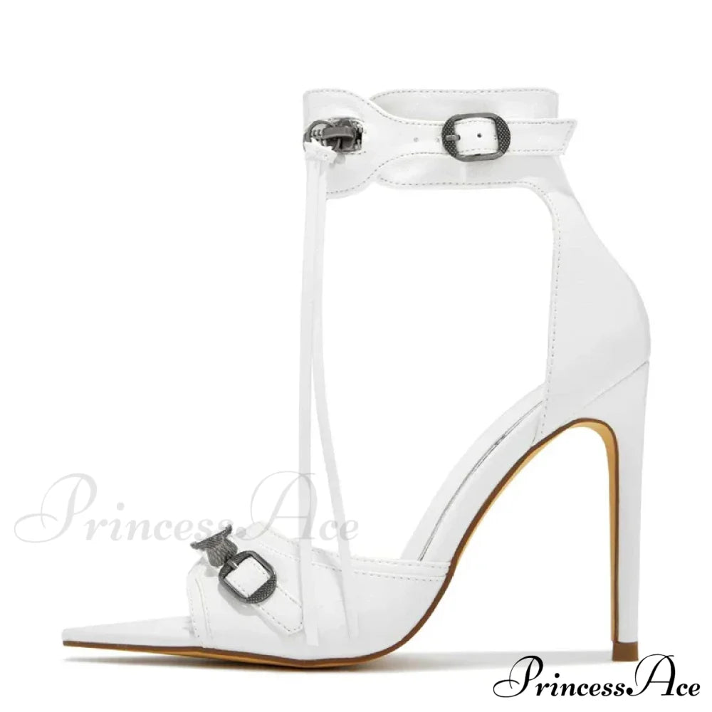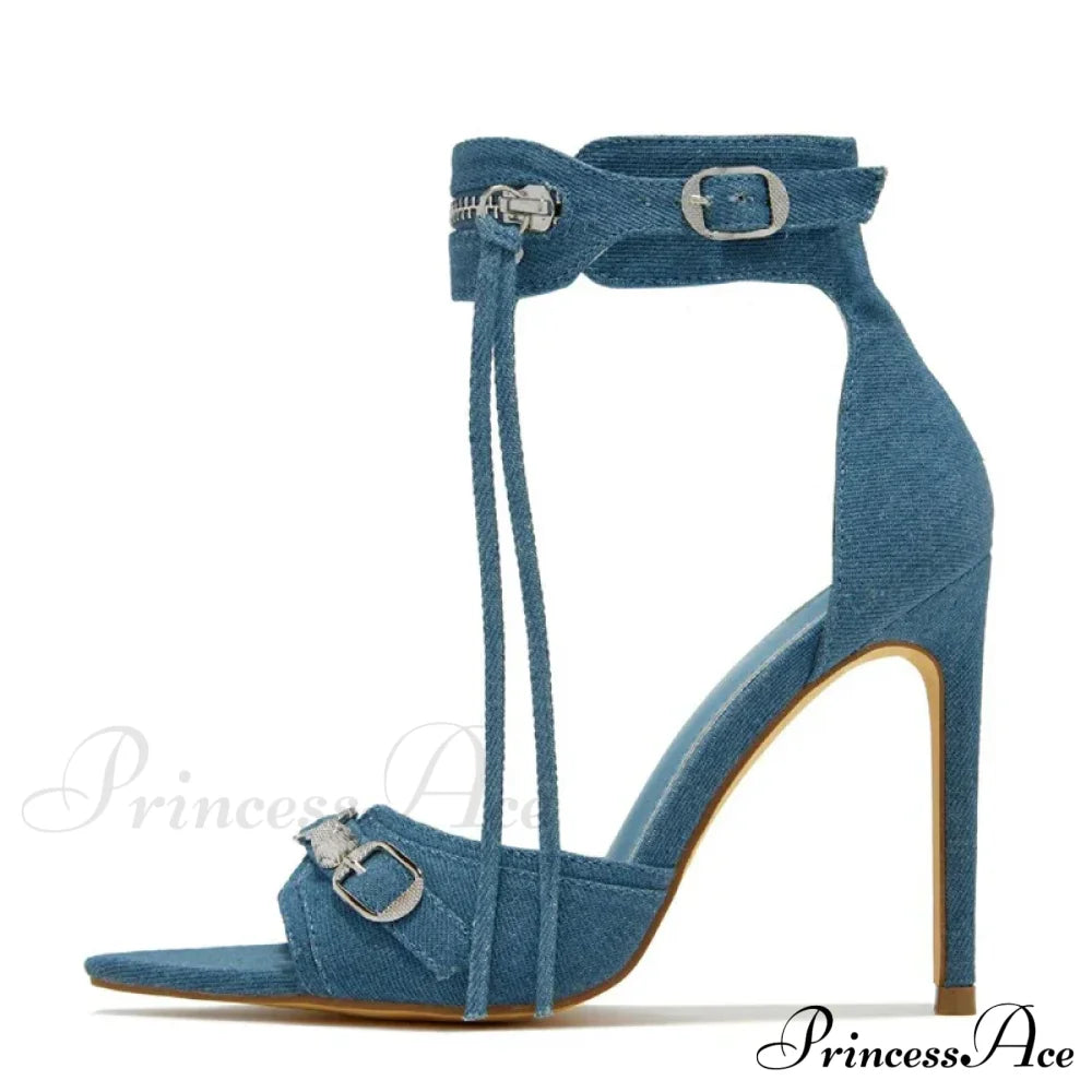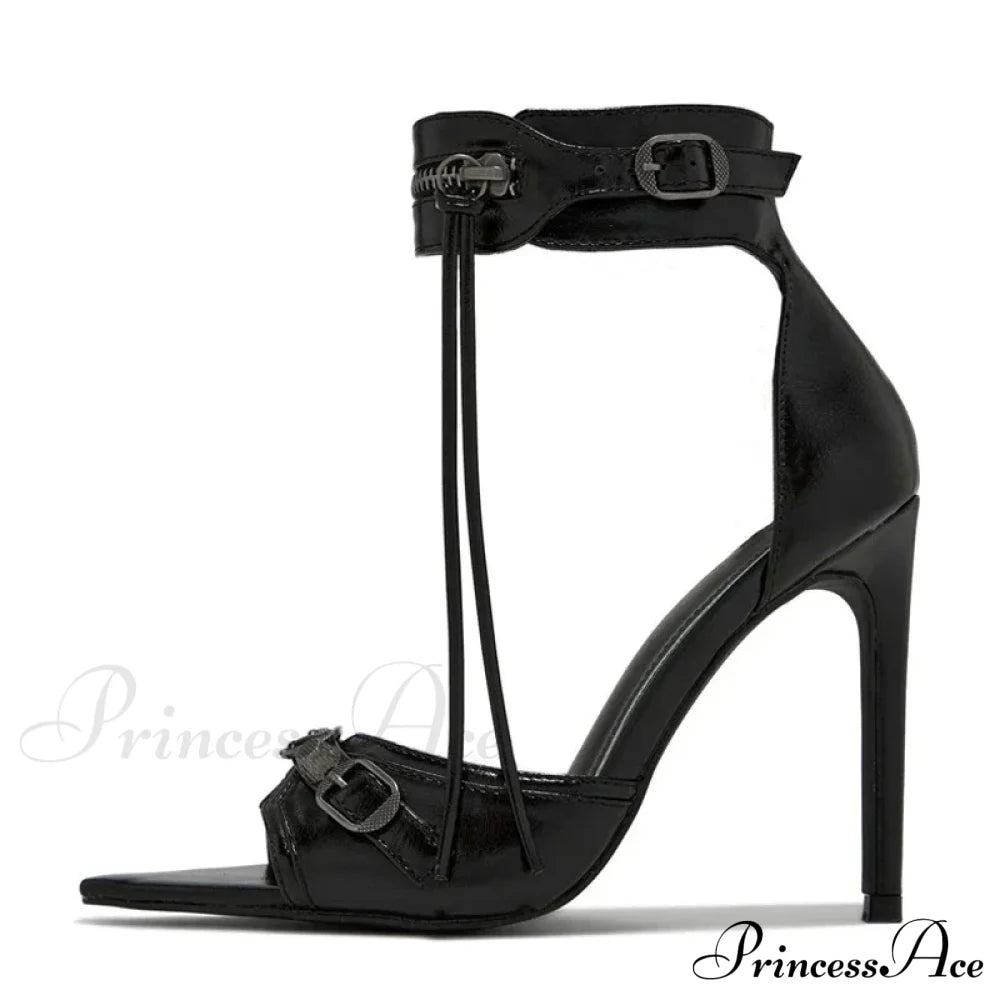 Summer Fashion Zip Tassel Women Sandals Metal Rivet Buckle Pointed Open Toe Stripper Heels Wedding Banquet Shoes Stiletto
