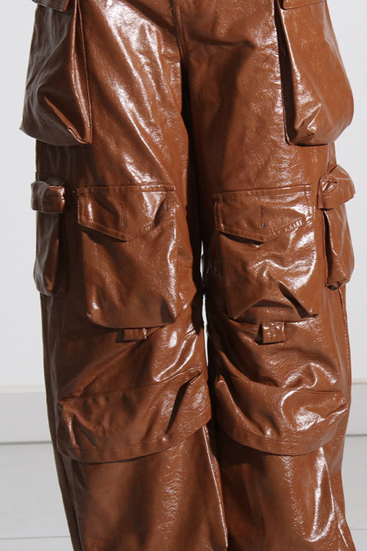 Summer Loose PU Leather Cargo Pant